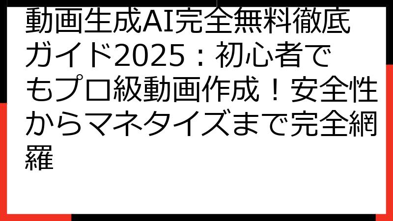 - 動画生成AI完全無料:2025年最新!無料で始めるプロ級動画作成術