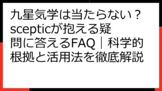 九星気学 九星気学は当たらない? scepticが抱える疑問に答えるFAQ|科学的根拠と活用法を徹底解説 九星気学、本当に当たらない? skepticsが抱える疑問と、その深層心理を徹底解剖! 九星気学に「当たらない」と感じているあなたへ。 なぜ、そのように思ってしまうのでしょうか。 そして、その疑問の裏には、どのような心理が隠されているのでし... 2025.08.17 九星気学