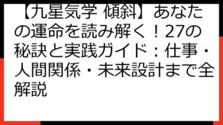九星気学 【九星気学 傾斜】あなたの運命を読み解く!27の秘訣と実践ガイド:仕事・人間関係・未来設計まで全解説 【九星気学 傾斜】あなたの運命を読み解く!27の秘訣と実践ガイド 九星気学の奥深い世界へようこそ。 この記事では、あなたの人生に隠された重要なメッセージを解き明かす「傾斜星」に焦点を当てます。 生まれ持った性質や、人生で目指すべき方向性、そ... 2025.08.17 九星気学