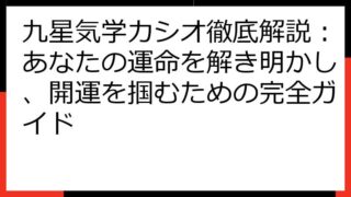 九星気学 九星気学カシオ徹底解説:あなたの運命を解き明かし、開運を掴むための完全ガイド 九星気学カシオ完全ガイド:あなたの運命を解き明かす!基本から応用まで徹底解説 九星気学カシオに興味をお持ちのあなたへ。 このブログ記事では、九星気学カシオの基本から応用まで、あなたの運命を解き明かすための情報を網羅しています。 カシオという... 2025.08.17 九星気学