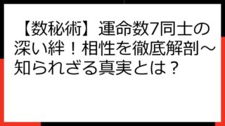数秘術 【数秘術】運命数7同士の深い絆!相性を徹底解剖~知られざる真実とは? 【数秘術】運命数7同士の深い絆!相性を徹底解剖~知られざる真実とは?~ 数秘術の世界へようこそ。 今回は、多くの人が興味を寄せる「運命数7」の相性に焦点を当てていきます。 静かで思慮深く、知的好奇心の旺盛な運命数7。 そんな7同士が出会った... 2025.08.17 数秘術