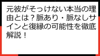 復縁占い・復縁相談 元彼がそっけない本当の理由とは?脈あり・脈なしサインと復縁の可能性を徹底解説! 元彼がそっけない本当の理由とは?脈あり・脈なしサインと復縁の可能性を徹底解説! 元彼との関係で「そっけない」と感じ、どうしたらいいか悩んでいませんか。 別れた後、彼が以前とは違う態度で接してくるのは、あなたにとって辛い現実かもしれません。 ... 2025.08.24 復縁占い・復縁相談