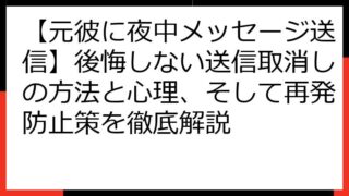 復縁占い・復縁相談 【元彼に夜中メッセージ送信】後悔しない送信取消しの方法と心理、そして再発防止策を徹底解説 【元彼】夜中に送ってしまったメッセージ、送信取消しは成功する?心理と対処法を徹底解説! 深夜、つい元彼にメッセージを送ってしまった…。 そして、後から「しまった!」と後悔する。 そんな経験はありませんか? 特に夜中は、寂しさや未練が募りやす... 2025.08.24 復縁占い・復縁相談