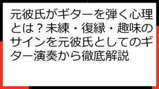 復縁占い・復縁相談 元彼氏がギターを弾く心理とは?未練・復縁・趣味のサインを元彼氏としてのギター演奏から徹底解説 元彼氏がギターを弾く理由とは?未練?復縁?それとも単なる趣味?心理と行動を徹底解説 元彼氏がギターを弾いている、そんな話を聞くと、一体どんな気持ちでいるのか、気になりますよね。 それは、あなたへの未練なのか、それとも復縁を望んでいるサインな... 2025.08.24 復縁占い・復縁相談