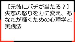 復縁占い・復縁相談 【元彼にバチが当たる?】失恋の怒りを力に変え、あなたが輝くための心理学と実践法 【元彼にバチが当たる】本当?科学的・心理学的アプローチから解き明かす復讐の末路 失恋の辛さ、理不尽な別れへの怒り。「あの元彼に、いつかバチが当たればいいのに…。」そう願った経験はありませんか?. 多くの人が一度は抱くこの感情の奥底には、どの... 2025.08.24 復縁占い・復縁相談
