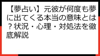復縁占い・復縁相談 【夢占い】元彼が何度も夢に出てくる本当の意味とは?状況・心理・対処法を徹底解説 【夢占い】元彼が何度も夢に出てくる本当の意味とは?心理と状況別の解釈 元彼が夢に何度も現れると、その度に胸がざわつきませんか? それは単なる偶然や、眠っている間の気まぐれかもしれません。 しかし、夢にはあなたの深層心理が隠されていることも多... 2025.08.24 復縁占い・復縁相談