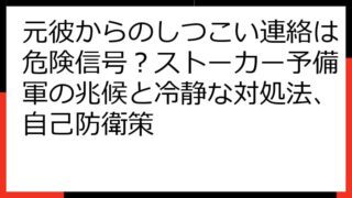 復縁占い・復縁相談 元彼からのしつこい連絡は危険信号?ストーカー予備軍の兆候と冷静な対処法、自己防衛策 元彼からの執拗な連絡、それは「ストーカー予備軍」のサイン?冷静な対処法と自己防衛 別れたはずの元彼から、未だに頻繁に連絡が来たり、SNSを監視されているような感覚に陥ったりしていませんか?. そのしつこい連絡や行動、もしかしたら「ストーカー... 2025.08.24 復縁占い・復縁相談