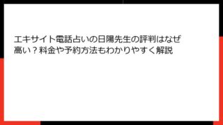エキサイト電話占い エキサイト電話占いの日陽先生の評判はなぜ高い?料金や予約方法もわかりやすく解説 日陽先生のエキサイト電話占いガイド:得意分野から鑑定方法まで徹底解説 こんにちは、占い好きの皆さん! 今日は、エキサイト電話占いに所属する人気の占い師、日陽先生について詳しくお話しします。日陽先生は、相談者の悩みを優しく包み込むような温かな... 2025.08.24 エキサイト電話占い