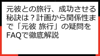 復縁占い・復縁相談 元彼との旅行、成功させる秘訣は?計画から関係性まで「元彼 旅行」の疑問をFAQで徹底解説 【元彼との旅行】今だから語れる!忘れられない旅の秘訣~成功&失敗談から学ぶ~ 元彼との旅行。 それは、過去の思い出を辿る旅なのか。 それとも、新たな自分を発見する旅なのか。 もしあなたが、そんな旅に少しでも興味があるなら、この記事はきっとあ... 2025.08.23 復縁占い・復縁相談