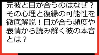 復縁占い・復縁相談 元彼と目が合うのはなぜ?その心理と復縁の可能性を徹底解説!目が合う頻度や表情から読み解く彼の本音とは? 元彼と目が合う…その時、あなたはどんな気持ち?心理から再燃の兆候まで徹底解説! 元彼と街でばったり目が合ってしまったり、SNSで彼のアイコンと目が合ってドキッとしたり。 そんな経験、あなたにもありませんか? 「偶然かな?」と思う反面、「もし... 2025.08.23 復縁占い・復縁相談