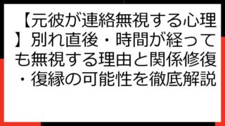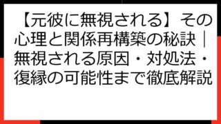 復縁占い・復縁相談 【元彼が連絡無視する心理】別れ直後・時間が経っても無視する理由と関係修復・復縁の可能性を徹底解説 【元彼が連絡無視する心理】なぜ?関係修復・復縁の可能性は?徹底解説 元彼からの連絡が突然途絶え、無視されてしまうと、不安や戸惑いを感じてしまいますよね。 「どうして連絡してこないんだろう?」 「私の何がいけなかったの?」 「もう復縁の可能性... 2025.08.23 復縁占い・復縁相談