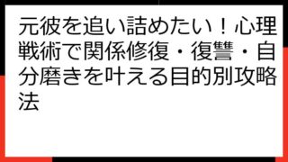 復縁占い・復縁相談 元彼を追い詰めたい!心理戦術で関係修復・復讐・自分磨きを叶える目的別攻略法 元彼を「動けない」状態に追い込む心理戦術:関係修復・復讐・自分磨きの3つの目的別攻略法 このブログ記事では、あなたが「元彼を追い詰めたい」という強い想いを抱いている状況を深く理解し、その目的に沿った具体的な心理戦術を解説します。 単なる感情... 2025.08.23 復縁占い・復縁相談
