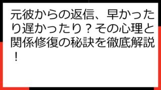 復縁占い・復縁相談 元彼からの返信、早かったり遅かったり?その心理と関係修復の秘訣を徹底解説! 元彼からの返信、早い?遅い?その心理と対応策を徹底解説! 元彼からのLINEやメール、返信が早い時もあれば、遅い時もある。 そのバラつきに、「私のこと、どう思ってるんだろう?」と不安になったり、返信速度から彼の気持ちを読み解こうとしたりして... 2025.08.23 復縁占い・復縁相談