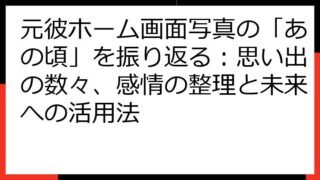 復縁占い・復縁相談 元彼ホーム画面写真の「あの頃」を振り返る:思い出の数々、感情の整理と未来への活用法 元彼との思い出、ホーム画面に隠された「あの頃」への秘密の扉~写真で振り返る甘酸っぱい記憶~ かつて、あなたのスマートフォンのホーム画面に、愛おしいあの人の写真が飾られていた時期があったのではないでしょうか。 何気なく設定した一枚の写真が、ふ... 2025.08.23 復縁占い・復縁相談