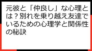 復縁占い・復縁相談 元彼と「仲良し」な心理とは?別れを乗り越え友達でいるための心理学と関係性の秘訣 元彼と「友達」でいられる心理とは?復縁の可能性と別れを乗り越える心の動き 元彼と別れた後も、なぜか「友達」として良好な関係を続けられていますか?. それは、あなたや相手の心の中に、いくつかの心理が働いているからかもしれません。. この記事で... 2025.08.23 復縁占い・復縁相談