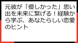 復縁占い・復縁相談 元彼が「優しかった」思い出を未来に繋げる!経験から学ぶ、あなたらしい恋愛のヒント 元彼が「優しかった」と感じる理由とは?関係性を紐解き、未来へのヒントを探る 「元彼、優しかったな…。」 そんな風に、ふとした瞬間に元彼の優しさを思い出し、懐かしく感じているあなたへ。 過去の恋愛を振り返る時、相手の「優しさ」は、時に色褪せる... 2025.08.23 復縁占い・復縁相談