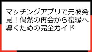 復縁占い・復縁相談 マッチングアプリで元彼発見!偶然の再会から復縁へ導くための完全ガイド 【元彼発見!】マッチングアプリで元彼を見つけた!復縁の可能性と成功への道筋 マッチングアプリで偶然、元彼を見つけてしまった。 そんな経験、あなたにもありませんか?. 「これは運命?」. 「もしかして、復縁できるかも?」. 一瞬の驚きと同時に... 2025.08.23 復縁占い・復縁相談