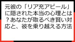 復縁占い・復縁相談 元彼の「リア充アピール」に隠された本当の心理とは?あなたが取るべき賢い対応と、彼を乗り越える方法 元彼の「リア充アピール」に隠された本当の心理と、あなたが取るべき賢い対応 元彼がSNSなどで「リア充アピール」をしていると、気になってしまうものです。 その行動には、一体どのような心理が隠されているのでしょうか。 この記事では、元彼の「リア... 2025.08.23 復縁占い・復縁相談