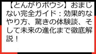 おまじない(御呪い) 【とんがりボウシ】おまじない完全ガイド:効果的なやり方、驚きの体験談、そして未来の進化まで徹底解説! 【とんがりボウシ】おまじないで運命が変わる?効果的なおまじないとその秘密を徹底解説! とんがりボウシの世界へようこそ! あなたは、ゲームで「おまじない」を使ったことがありますか? 実は、とんがりボウシの世界では、おまじないがあなたのゲーム体... 2025.08.22 おまじない(御呪い)