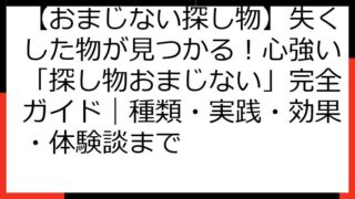 おまじない(御呪い) 【おまじない探し物】失くした物が見つかる!心強い「探し物おまじない」完全ガイド|種類・実践・効果・体験談まで 【おまじないで発見!】失くした物が見つかる!心強い「探し物おまじない」完全ガイド 「あれ?どこに置いたっけ?」 「もしかして、失くしちゃったかも…」 そんな経験はありませんか? 誰もが一度は経験する「探し物」。 見つからずにイライラしたり、... 2025.08.22 おまじない(御呪い)