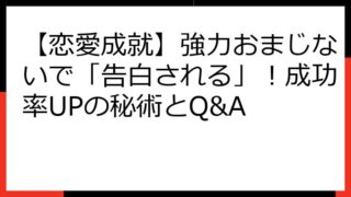 おまじない(御呪い) 【恋愛成就】強力おまじないで「告白される」!成功率UPの秘術とQ&A 【秘術】恋愛運を劇的にUP!強力おまじないで「告白される」未来を掴む方法 この記事では、あなたの恋愛運を飛躍的に向上させるための、強力な「おまじない」に焦点を当てます。 「あと一歩で告白されるのに…」 「好きな人に振り向いてほしい…」 そん... 2025.08.22 おまじない(御呪い)
