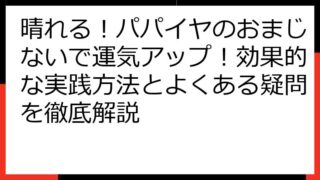 おまじない(御呪い) 晴れる!パパイヤのおまじないで運気アップ!効果的な実践方法とよくある疑問を徹底解説 晴れる!パパイヤのおまじないで運気アップ!効果と実践方法を徹底解説 この記事では、あなたの日常に「晴れ」を呼び込むための、パワフルなパパイヤのおまじないについて、その効果や実践方法を詳しく解説します。 パパイヤが持つ不思議な力とは一体何なの... 2025.08.22 おまじない(御呪い)