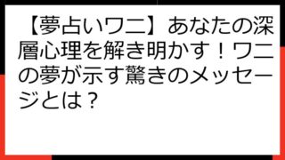 夢占い 【夢占いワニ】あなたの深層心理を解き明かす!ワニの夢が示す驚きのメッセージとは? 【夢占いワニ】あなたの深層心理を解き明かす!ワニの夢が示す驚きのメッセージとは? ワニの夢を見たことはありますか?. あの力強く、時には恐ろしい姿をしたワニが夢に現れたとき、それは一体何を意味するのでしょうか?. このブログ記事では、夢占い... 2025.08.22 夢占い