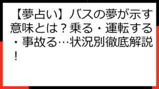 夢占い 【夢占い】バスの夢が示す意味とは?乗る・運転する・事故る…状況別徹底解説! 【夢占い】バスの夢が示す意味とは?乗る・運転する・事故る…状況別徹底解説 バスの夢を見たあなたへ。 夢の中のバスは、あなたの人生の歩みや、周囲との関わり、そして心の状態を映し出しています。 単なる移動手段であるバスですが、夢占いにおいては非... 2025.08.22 夢占い