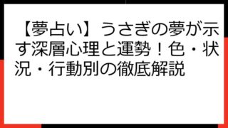 夢占い 【夢占い】うさぎの夢が示す深層心理と運勢!色・状況・行動別の徹底解説 【夢占い】うさぎの夢が示す深層心理と吉凶!場面別・色別・状況別の徹底解説 あなたが最近見た、うさぎの夢。. それは、あなたの深層心理からの大切なメッセージかもしれません。. このブログ記事では、うさぎの夢が持つ様々な意味を、専門的な視点から... 2025.08.22 夢占い