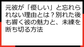 復縁占い・復縁相談 元彼が「優しい」と忘れられない理由とは?別れた後も響く彼の魅力と、未練を断ち切る方法 元彼が「優しい」と感じさせる、別れた後も忘れられない魅力とは?再燃の可能性も徹底解説 「元彼は、どうしてあんなに優しかったんだろう…。」 「別れてからも、ふとした瞬間に元彼の優しさを思い出してしまう。」 そんな風に、元彼の優しさに触れて、未... 2025.08.22 復縁占い・復縁相談