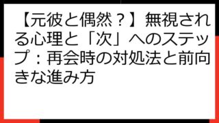 復縁占い・復縁相談 【元彼と偶然?】無視される心理と「次」へのステップ:再会時の対処法と前向きな進み方 【元彼と偶然?】無視される心理と「次」へのステップ 元彼と偶然ばったり会ってしまった。 しかも、まさかの無視。 そんな経験はありませんか? 気まずい思いや、ショックでどうしていいか分からない、という方もいらっしゃるかもしれません。 この記事... 2025.08.22 復縁占い・復縁相談