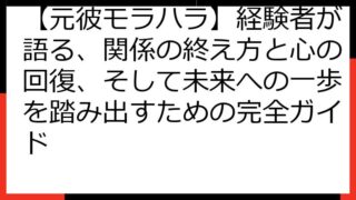 復縁占い・復縁相談 【元彼モラハラ】経験者が語る、関係の終え方と心の回復、そして未来への一歩を踏み出すための完全ガイド 【元彼モラハラ】その関係、もう終わりにしよう。抜け出すための全知識と具体的なステップ 元彼との関係で、言葉や態度による精神的な苦痛に悩まされていませんか。 それは、モラルハラスメント(モラハラ)かもしれません。 このブログ記事では、モラハラ... 2025.08.22 復縁占い・復縁相談