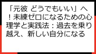 復縁占い・復縁相談 「元彼 どうでもいい」へ!未練ゼロになるための心理学と実践法:過去を乗り越え、新しい自分になる 【元彼、もうどうでもいい!】未練ゼロへの道:過去を乗り越え、新しい自分になる方法 この記事にたどり着いたあなたは、きっと過去の恋愛に区切りをつけたい、前を向きたいと思っているはずです。 元彼のこと、もうどうでもいいと思いたいのに、なぜか頭か... 2025.08.22 復縁占い・復縁相談