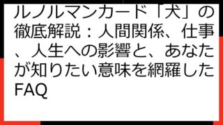 ルノルマンカード ルノルマンカード「犬」の徹底解説:人間関係、仕事、人生への影響と、あなたが知りたい意味を網羅したFAQ 【ルノルマンカード徹底解説】「犬」のカードが示す深い意味と人間関係への影響 ルノルマンカードで「犬」のカードを引いたあなたへ。 このカードは、単なる忠誠心や友情以上の、奥深いメッセージを秘めています。 この記事では、「犬」のカードが持つ多角... 2025.08.21 ルノルマンカード