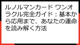 ルノルマンカード ルノルマンカード ワンオラクル完全ガイド:基本から応用まで、あなたの運命を読み解く方法 ルノルマンカード ワンオラクル完全マスター:基本から応用まで、あなたの運命を読み解く方法 ルノルマンカードのワンオラクルに興味をお持ちのあなたへ。 このブログ記事では、ルノルマンカードのワンオラクルを深く理解し、日々の生活に活かすための網羅... 2025.08.21 ルノルマンカード