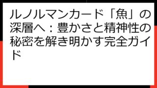 ルノルマンカード ルノルマンカード「魚」の深層へ:豊かさと精神性の秘密を解き明かす完全ガイド ルノルマンカード「魚」の深層へ:豊かさと精神性の両面から読み解く秘密 ルノルマンカードの神秘的な世界へようこそ。 今回は、数あるカードの中でも特に豊かさと精神性の象徴として知られる「魚」のカードに焦点を当てていきます。 このカードが示す物質... 2025.08.21 ルノルマンカード