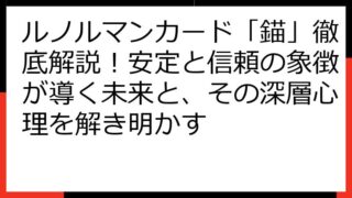 ルノルマンカード ルノルマンカード「錨」徹底解説!安定と信頼の象徴が導く未来と、その深層心理を解き明かす ルノルマンカード「錨」徹底解説!安定と信頼の象徴が導く未来 ルノルマンカードの世界へようこそ。 今回は、数あるカードの中でも特に「安定」や「信頼」といった、私たちにとって根源的なテーマを司る「錨」のカードに焦点を当てます。 このカードは、人... 2025.08.21 ルノルマンカード