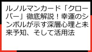 ルノルマンカード ルノルマンカード「クローバー」徹底解説!幸運のシンボルが示す深層心理と未来予知、そして活用法 ルノルマンカード「クローバー」徹底解説!幸運のシンボルが示す深層心理と未来予知 ルノルマンカードの中でも特にポジティブな意味合いを持つ「クローバー」。 このカードは、しばしば幸運やチャンスの到来を告げるサインとして捉えられます。 しかし、そ... 2025.08.21 ルノルマンカード