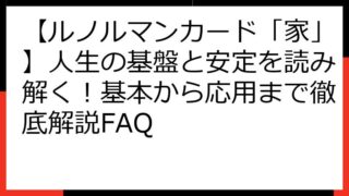 ルノルマンカード 【ルノルマンカード「家」】人生の基盤と安定を読み解く!基本から応用まで徹底解説FAQ 【ルノルマンカード「家」】徹底解説!あなたの人生の基盤と安定を読み解く鍵 ルノルマンカードの「家」のカードについて、深く掘り下げたいとお考えのあなたへ。 このカードは、あなたの人生における基盤、安定、そして心の拠り所を象徴しています。 単に... 2025.08.21 ルノルマンカード