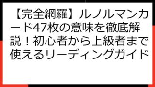 ルノルマンカード 【完全網羅】ルノルマンカード47枚の意味を徹底解説!初心者から上級者まで使えるリーディングガイド 【徹底解説】ルノルマンカード47枚の全意味を網羅!初心者から上級者まで使える徹底ガイド ルノルマンカードの世界へようこそ。 このカードは、その象徴的な絵柄と組み合わせによって、驚くほど具体的かつ詳細なメッセージを伝えてくれます。 今回は、4... 2025.08.21 ルノルマンカード