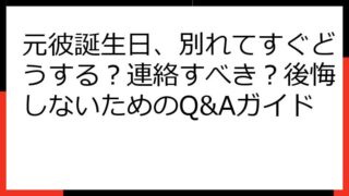 復縁占い・復縁相談 元彼誕生日、別れてすぐどうする?連絡すべき?後悔しないためのQ&Aガイド 元彼誕生日、別れてすぐどうする?複雑な心境を乗り越えるための完全ガイド 元彼との誕生日が近い。 別れてまだ間もないのに、どうしたらいいか分からない。 連絡すべきか、それとも静かに過ごすべきか。 SNSで彼の動向をチェックしてしまう。 彼の誕... 2025.08.21 復縁占い・復縁相談