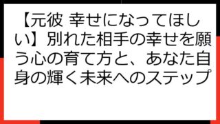 復縁占い・復縁相談 【元彼 幸せになってほしい】別れた相手の幸せを願う心の育て方と、あなた自身の輝く未来へのステップ 【元彼を幸せを願うあなたへ】別れても「あの人の幸せ」を願える心の育て方 別れてしまったけれど、元彼の幸せを心から願う。 そんな温かい気持ちを抱えているあなたへ。 この記事では、なぜ元彼の幸せを願いたいのか、その理由を探り、どのようにすればお... 2025.08.21 復縁占い・復縁相談