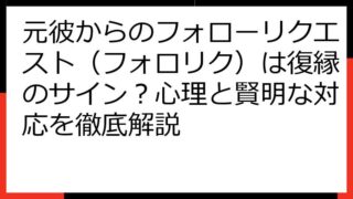 復縁占い・復縁相談 元彼からのフォローリクエスト(フォロリク)は復縁のサイン?心理と賢明な対応を徹底解説 元彼からのフォローリクエスト:その心理と適切な対応を徹底解説! 元彼から、突然「フォローリクエスト」が届いた。 あなたはこの通知に、驚きや戸惑い、あるいは期待など、様々な感情を抱いているかもしれません。 「どうして今さら?」「復縁したいのか... 2025.08.21 復縁占い・復縁相談