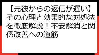 復縁占い・復縁相談 【元彼からの返信が遅い】その心理と効果的な対処法を徹底解説!不安解消と関係改善への道筋 【元彼からの返信が遅い】その心理と効果的な対処法を徹底解説! 元彼からの連絡、思ったより返信が遅くて、不安になっているあなたへ。 「もしかして、もう脈なしなのかな?」 「駆け引きされてるのかな?」 色々なことが頭をよぎりますよね。 この記事... 2025.08.21 復縁占い・復縁相談