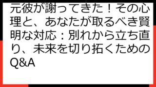 復縁占い・復縁相談 元彼が謝ってきた!その心理と、あなたが取るべき賢明な対応:別れから立ち直り、未来を切り拓くためのQ&A 元彼が謝ってきた!その心理と、どう向き合うべきかの全方位ガイド 元彼から謝罪の連絡が来ると、多くの女性が動揺し、その心理や今後の展開に悩むことでしょう。 「なぜ今になって?」 「本当に反省しているの?」 「またやり直せるのだろうか?」 そん... 2025.08.21 復縁占い・復縁相談