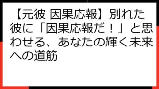 復縁占い・復縁相談 【元彼 因果応報】別れた彼に「因果応報だ!」と思わせる、あなたの輝く未来への道筋 【元彼因果応報】別れた彼に「因果応報だ!」と思わせる、あなたの輝く未来への道筋 数年、数ヶ月、あるいは数週間… あなたが大切にしていた関係が終わってしまった時。 「なぜこんな目に遭うの?」 「あの時の彼の仕打ち、許せない…」 そんな風に、別... 2025.08.21 復縁占い・復縁相談