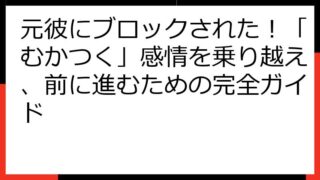復縁占い・復縁相談 元彼にブロックされた!「むかつく」感情を乗り越え、前に進むための完全ガイド 元彼にブロックされた!「むかつく」感情を乗り越え、前に進むための完全ガイド 元彼にブロックされた。 突然の出来事に、何とも言えない「むかつく」気持ちでいっぱいかもしれません。 連絡手段を一方的に断たれたことに、怒りや悲しみ、そして裏切られた... 2025.08.21 復縁占い・復縁相談