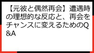 復縁占い・復縁相談 【元彼と偶然再会】遭遇時の理想的な反応と、再会をチャンスに変えるためのQ&A 【元彼と偶然再会】遭遇時の理想的な反応と避けるべきNG行動を徹底解説! 突然の元彼との遭遇。 「どうしよう!」と心臓がドキドキして、頭が真っ白になってしまう方も少なくないはずです。 かつて愛した相手に偶然会った時、あなたはどんな反応をするべ... 2025.08.21 復縁占い・復縁相談