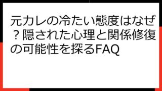 復縁占い・復縁相談 元カレの冷たい態度はなぜ?隠された心理と関係修復の可能性を探るFAQ 元カレの冷たい態度に隠された真実とは?複雑な心理と関係修復の可能性 「あの元カレ、どうしてあんなに冷たいんだろう…。」 「別れた後、態度が急に変わってしまって、どうしたらいいかわからない。」 そんな悩みを抱えて、この記事にたどり着いたあなた... 2025.08.24 復縁占い・復縁相談