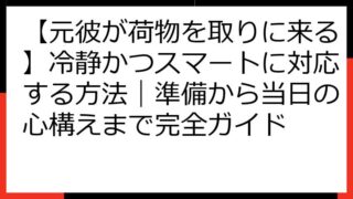 復縁占い・復縁相談 【元彼が荷物を取りに来る】冷静かつスマートに対応する方法|準備から当日の心構えまで完全ガイド 【元彼が荷物を取りに来る】冷静かつスマートに対応する方法|準備から当日の心構えまで完全ガイド 元彼が荷物を取りに来るという状況に、どう向き合えば良いか悩んでいませんか。 別れは辛いものですが、元彼との「荷物の受け渡し」は、新しいスタートを切... 2025.08.24 復縁占い・復縁相談